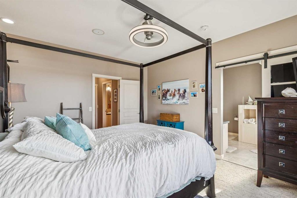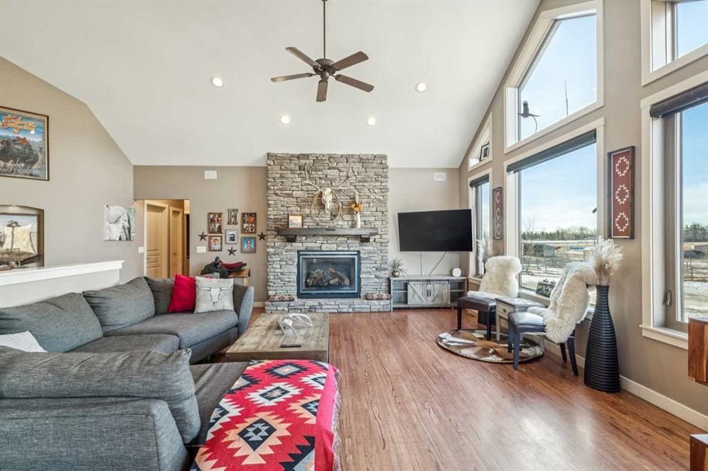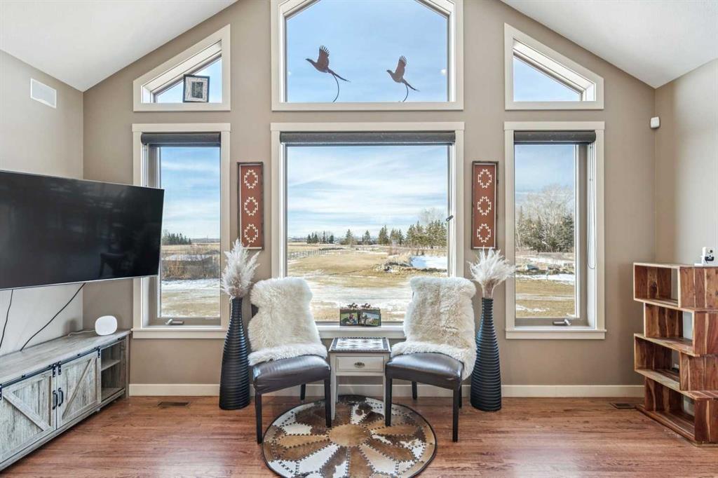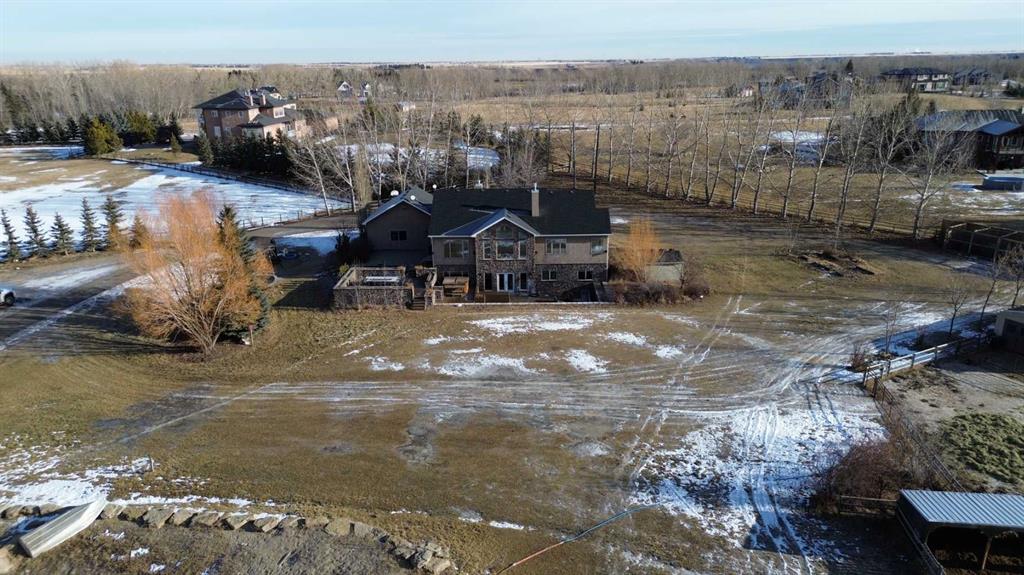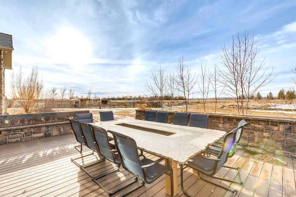 Step outside to your private oasis: a very unique stocked trout pond with sandy beach (perfect for summer swims), cross-fenced pastures with animal shelters, and mature trees adorning the grounds. The garden beds are ready for planting, and the outdoor entertaining spaces are unparalleled—three levels of low-maintenance decking, custom high-end gas fireplaces, and panoramic views. For the hobbyist, professional, or car enthusiast, the impressive 3000+ sq ft Steel framed, insulated and heated professional shop is a standout feature. Complete with an 600 sq ft mezzanine/ office/ man cave, it’s ideal for any home business use or endless projects.This impeccably maintained, move-in-ready home boasts great schools nearby, quick access to Calgary or Okotoks, and proximity to everything you need. Whether you’re seeking a peaceful family sanctuary, equestrian setup potential, or simply the ultimate acreage lifestyle with mountain vistas, this property delivers it all.