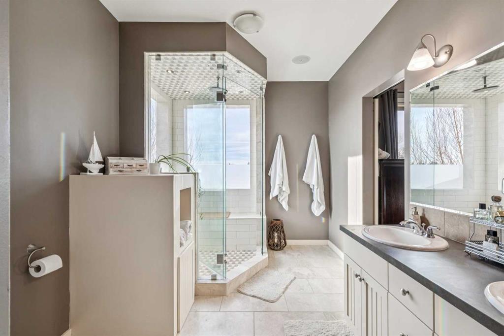 The perfectly sized bungalow (with walkout basement) offers an open-concept main floor featuring a large kitchen with central island, dining room, and cozy family room—all bathed in natural light and showcasing gorgeous West facing mountain views through the large oversized windows. The master suite is a true spa-like retreat with a luxurious ensuite with beautiful glass and generous walk-in closet, while the other main-floor bedrooms are spacious. A practical mudroom/laundry room off the oversized double garage is very convenient and the large front entryway leads you into the sun filled living room.